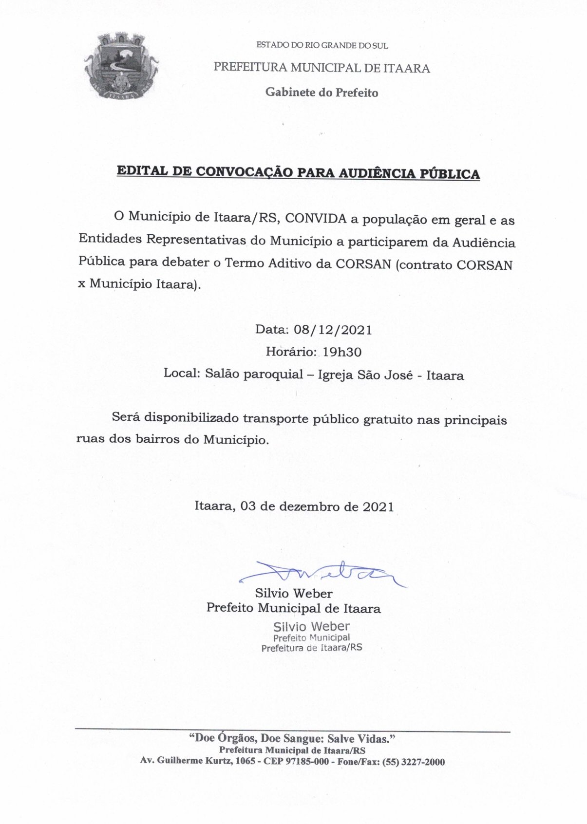 EDITAL DE CONVOCAÇÃO PARA AUDIÊNCIA PÚBLICA. TEMA: TERMO ADITIVO DA CORSAN