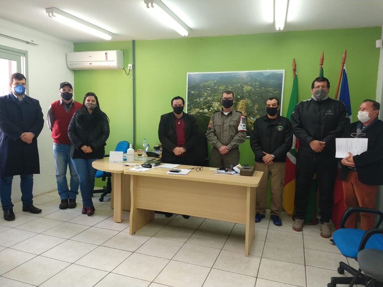 Além do Prefeito, participaram da reunião, o Comandante da Brigada Militar, Sargento Volmir Humberto Flores, a Secretária Extraordinária Luciane Lemos, o Chefe de Gabinete Zenir Oliveira, o Secretário de Desenvolvimento Turístico e Cultural Jederson Pereira, e os servidores André Diaz e Cleverton Ferraz.