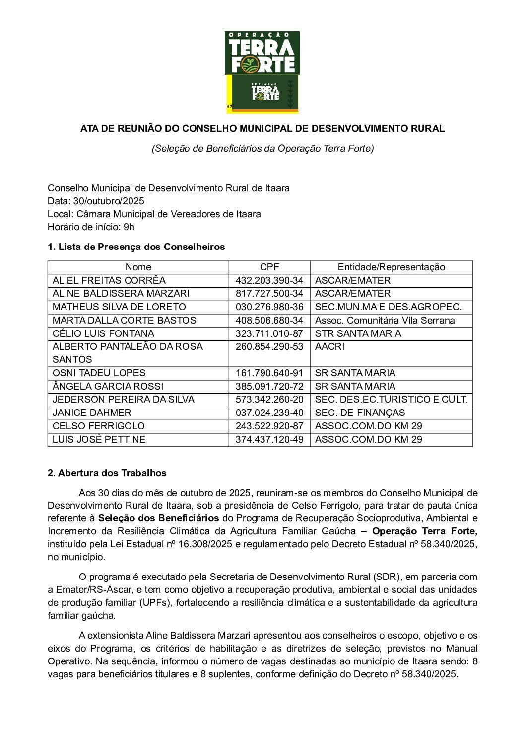 ATA DE REUNIÃO DO CONSELHO MUNICIPAL DE DESENVOLVIMENTO RURAL - 30/outubro/2025...