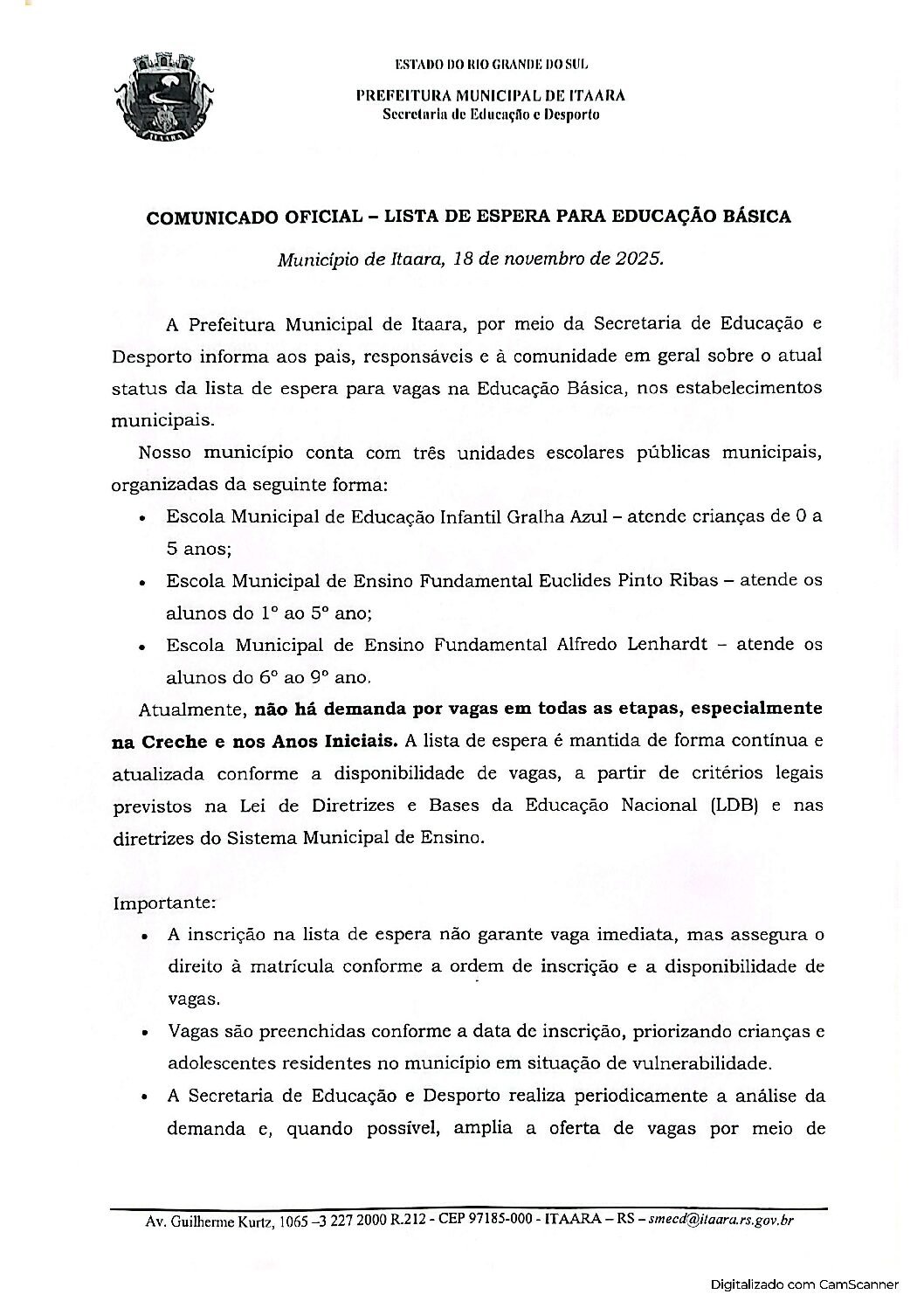 CME - Conselho Municipal de Educação de Itaara